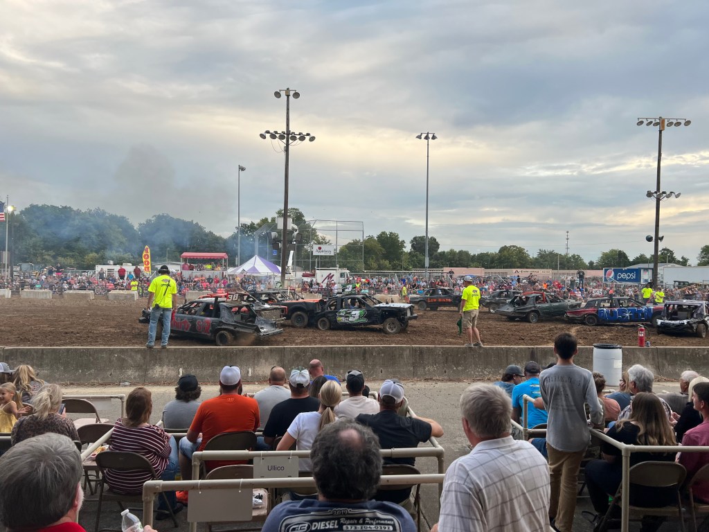 Joshwah didn’t have a fun time at the derby, he kept plugging his ears whenever a scrum would start and someone would shift gears and throttle their engine to the point of ruin. He’d get reprieve whenever a bumper or a radiator would shake loose and the heat would be halted so it could be removed. The drivers take it seriously, perhaps too serious but maybe there’s a charm to that. One car had its axle snapped and stalled helplessly, another car backed up and t-boned it two or three times all while the driver of the motionless car gave him the bird and took bits and pieces off his car to throw at his opponent. It was funny.