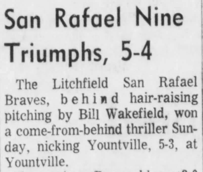 Okay, so what happened was as followed: single, walk, sac bunt E5 throwing error, another E5 fielding along with an E6 throwing, double, flyout, fielder’s choice but also E2 on a catch, walk, single, home run, home run, until mercifully Casey Stengel stumbles out of the dugout down 13-6 and pulls Wakefield. Only 2 of those 10 runs surrendered by Bill were counted as earned.