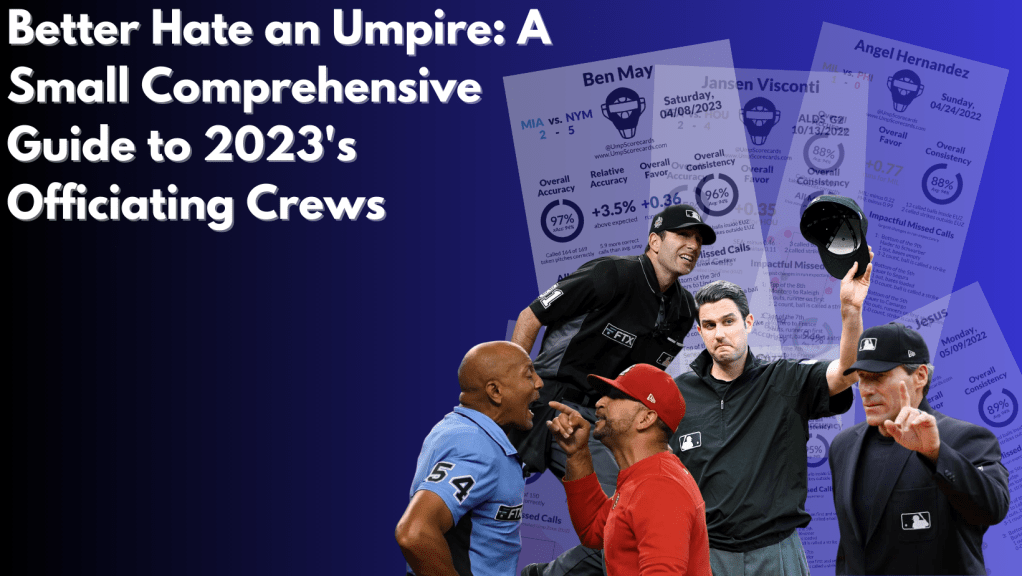 There are no measurable instances of umpires enforcing rules correctly in this guide. Umpires mainly do a good job, and frankly you probably got that question wrong about batter’s interference, so boring you to death on how many Obstruction Bs–oh you probably didn’t know that either, that there’s two kinds of obstructions–Jeremie Rehak called in 2022 will put the both of us to sleep. We’ll keep to what matters to fans as it’s easier to follow: balls and strikes, ejections, and challenges.