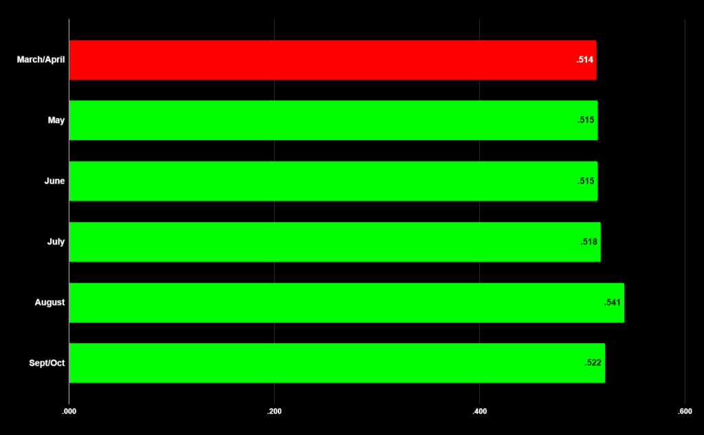 Historically, believe it or not, April is the worst month for the Cardinals. Since their transformation from the Perfectos in 1900, the Cards have a .514 winning percentage for the month, that’s just a smidge lower than their next weakest months May and June.