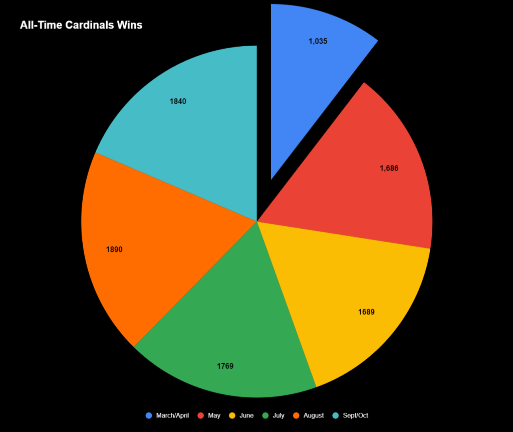 Early season woes were not uncommon for the Cardinals, and you’re probably wanting to know which months they performed best in and yes you already know the answer to that.
